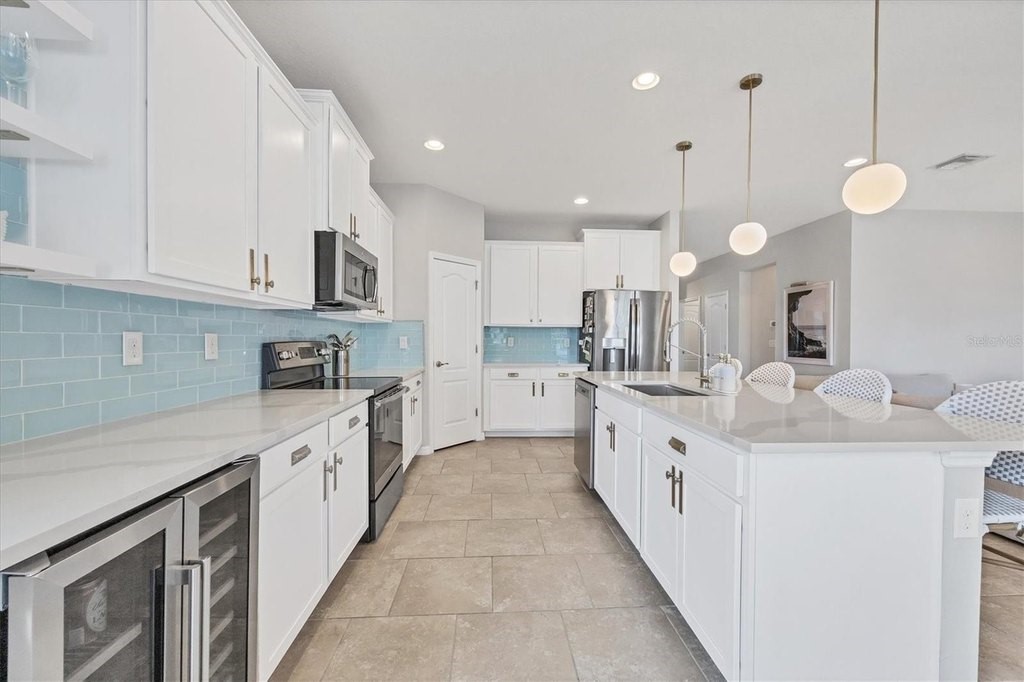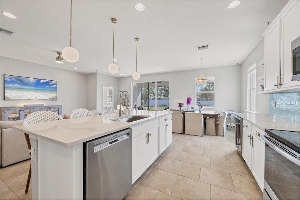 One or more photo(s) has been virtually staged. Cul-de-sac charm, coastal vibes, and low maintenance living - this one feels like home! Perfectly positioned in the heart of Sarasota, this thoughtfully refreshed 3 bedroom, two and a half bath, plus office residence offers versatility for comfortable modern living. Delivering a light-filled, open concept layout - the kitchen takes center stage with extended quartz countertops, a stunning oversized island, a sleek glass-tile backsplash and built-in beverage bar - perfect for gathering and entertaining. The den, complete with French doors, provides a private retreat suited for a fourth bedroom, an office, or playroom. The bedrooms have been outfitted with custom closets, and the bathrooms have been elevated with a light, refined aesthetic. Enjoy time outdoors on your private screened-in lanai overlooking a fully fenced backyard - ideal for relaxing, outdoor activities and a place for your furry family members to roam and play. Located in THE top-rated school district of Ashton Elementary, Sarasota Middle and Riverview High and just a short drive from world-renowned Siesta Key Beach, Downtown Sarasota, I-75, Legacy Trail and Urfer Family Park- this home offers an elevated blend of convenience and lifestyle!